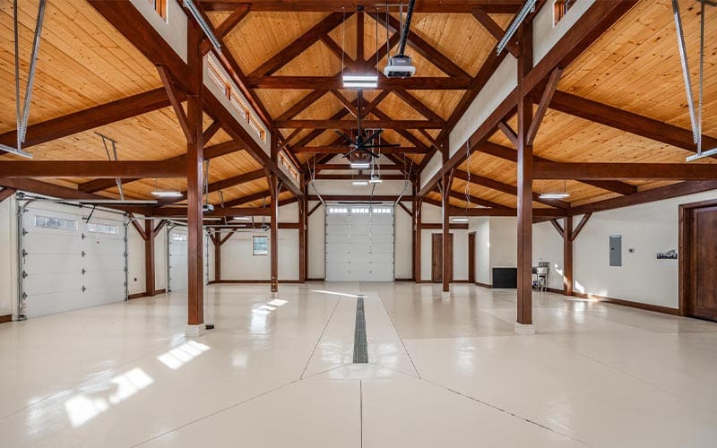 At approximately 2,500 square feet, this garage was designed to please any car enthusiast, from classic car collections to weekend do-it-yourselfers. Ideal for housing prized vehicles, RVs or creating a workshop space. The tall ceilings enhance ventilation and fit any Class A Motorcade. The layout also includes space for a half bath and RV hookups for convenience.